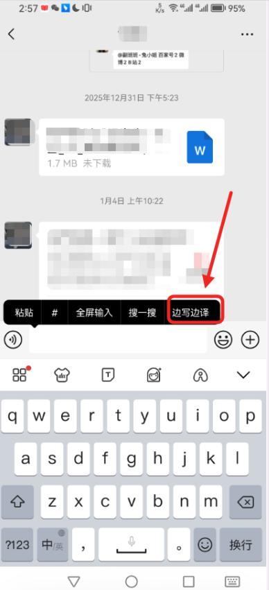 收到英文/日文/韩文消息,长按 → 选择“翻译”