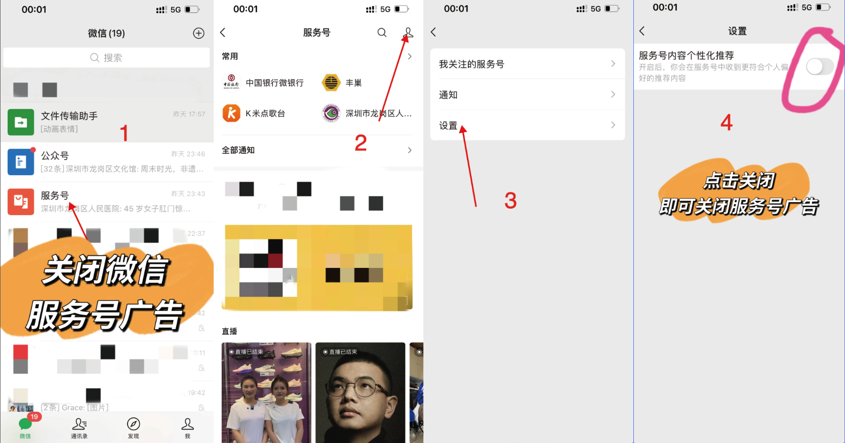 功能位置:微信 → 广告 → 我的 → 设置 → 可选择“接收但不提醒”或关闭。